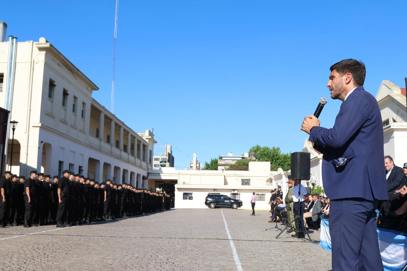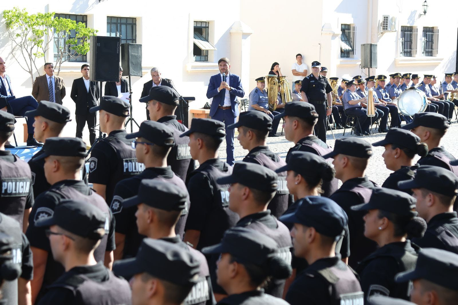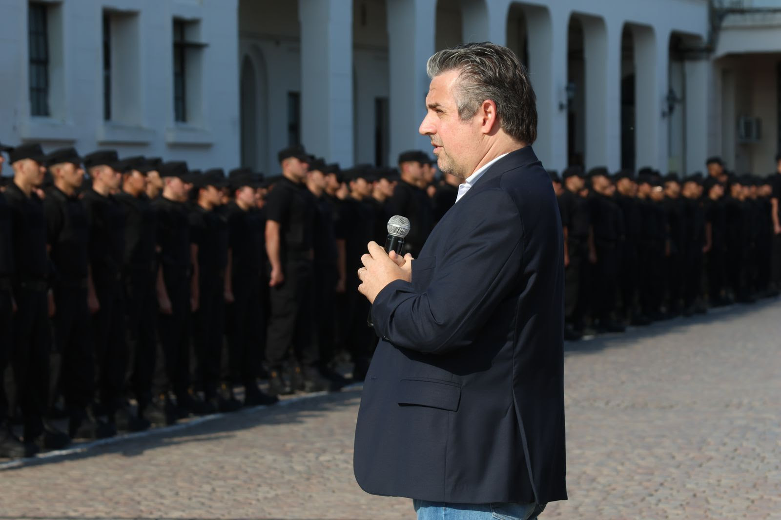 Por último, el jefe de la Policía, Luis Maldonado, agradeció “al gobernador el esfuerzo, su presencia da cuenta del acompañamiento que recibimos” y se dirigió a los presentes “tomen conciencia de la ropa que van a recibir, un uniforme de servidor público, y que debemos doblegar esfuerzos para que la sociedad sienta que hay una fuerza que no va a detenerse hasta poner a disposición de la justicia a los delincuentes”.