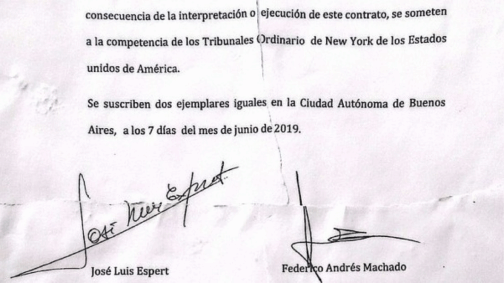 Días atrás, en un allanamiento a la vivienda de Machado en Viedma, los investigadores encontraron un contrato firmado entre ambos por un monto cercano a un millón de dólares, fechado en junio de 2019.