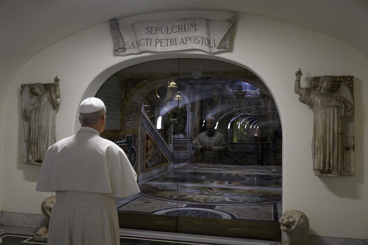 Antes de la misa, León XIV rezó ante las tumbas de sus predecesores en las Grutas de la Basílica de San Pedro.