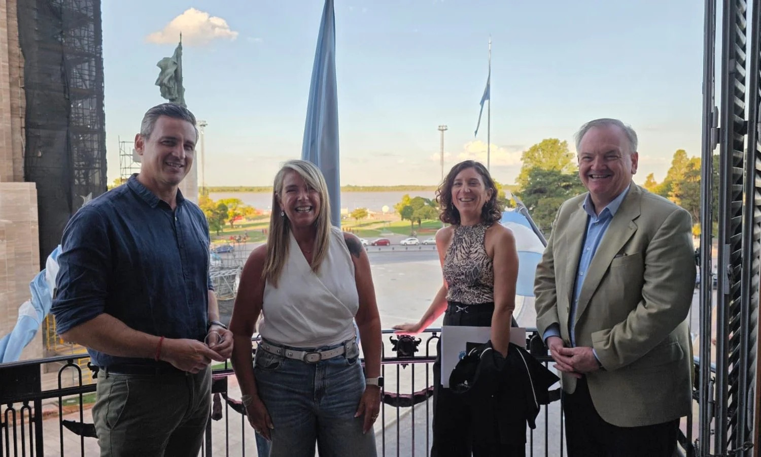 Seguidamente, la comitiva legislativa visitó el Concejo Municipal de Rosario, donde mantuvo una reunión de trabajo con concejales y concejalas del bloque Unidos, encabezados por la presidenta del cuerpo, María Eugenia Schmuck.