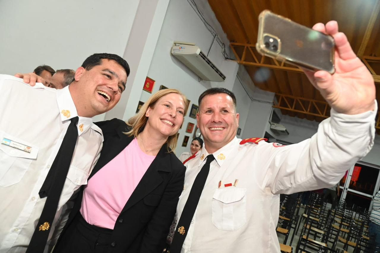 La vicegobernadora destacó además que “Santa Fe es tierra de gente invencible, que lucha, trabaja y es voluntaria. Eso representan nuestros bomberos: el compromiso, el servicio y la vocación de salvar vidas”.