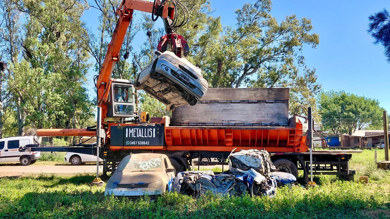 El Ministerio de Gobierno e Innovación, a través de la Agencia Provincial de Registro, Administración y Destino de Bienes y Derechos Patrimoniales (Aprad), comenzó este martes el proceso de compactación de más de 140 vehículos en desuso, o ya sin valor para la Justicia, alojados en el Departamento Criminalístico Región 1 -en el depósito de la Policía de Investigaciones (PDI)-, en la ruta nacional 11, kilómetro 482, de la ciudad de Recreo.