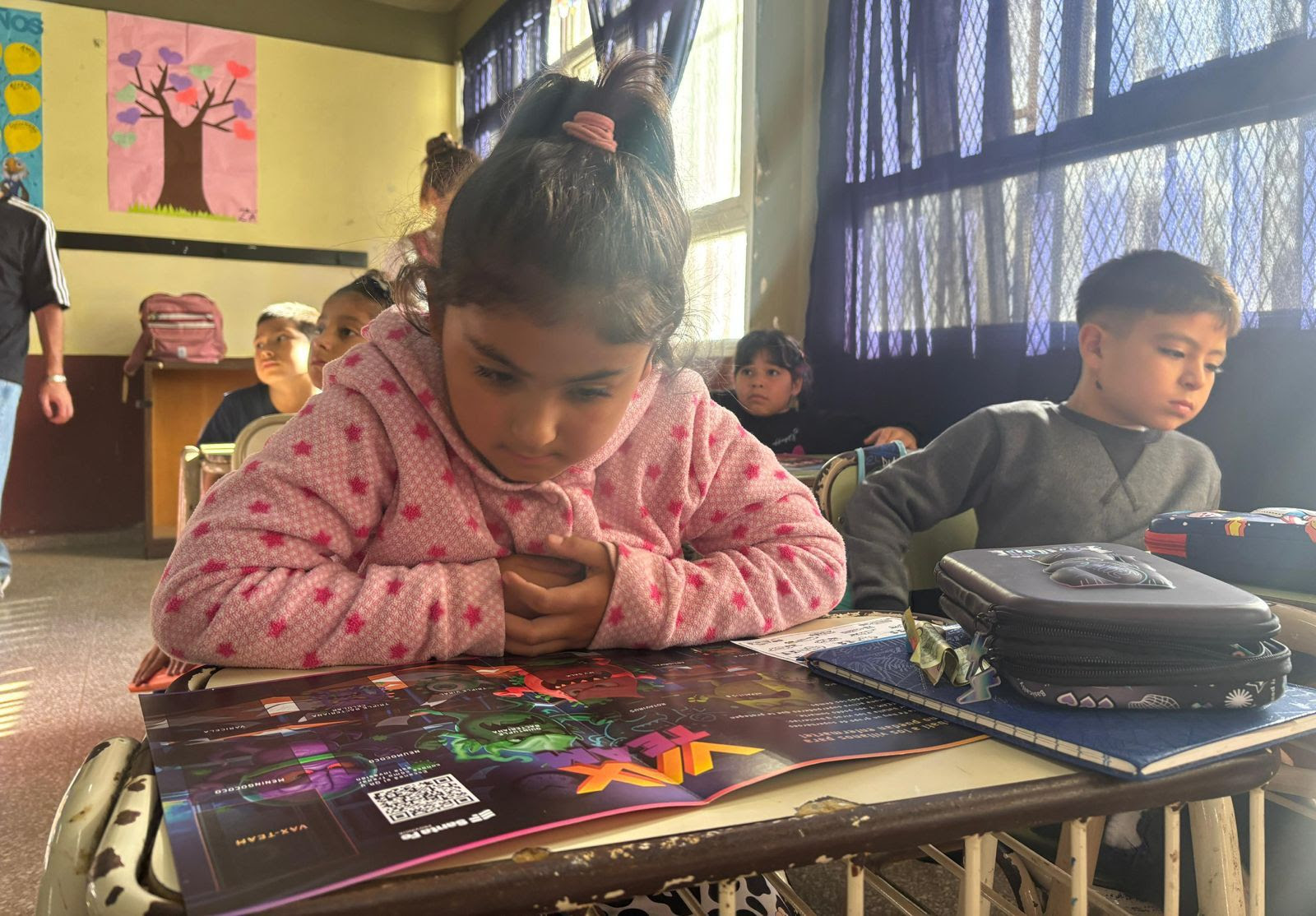 La estrategia interministerial Vax Team tuvo este jueves su primera jornada en la ciudad de Rosario, con una actividad realizada en el Centro de Salud Alfonsina Storni, en Rosario, junto a niñas y niños de primer grado de la Escuela Nº 1090 Domingo Matheu. La propuesta marca el inicio de la implementación en territorio de este programa provincial que busca recuperar las coberturas de vacunación en edad escolar a través del trabajo articulado entre equipos de salud, escuelas y una herramienta lúdica que promueve el control de carnets.